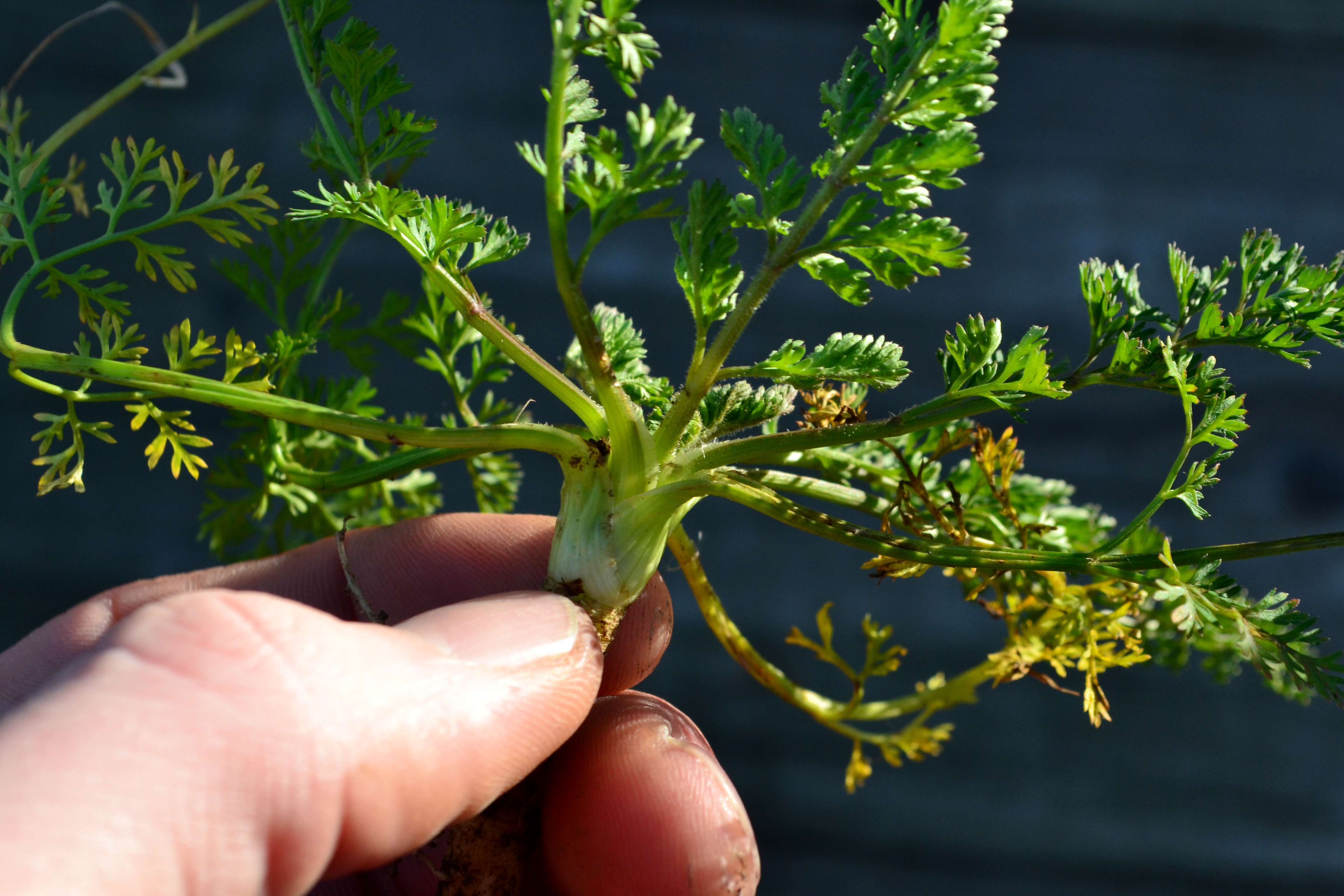 Sheathed petiole: Poison Hemlock (left), Wild Carrot (right) (© 2026 Henry Holly)