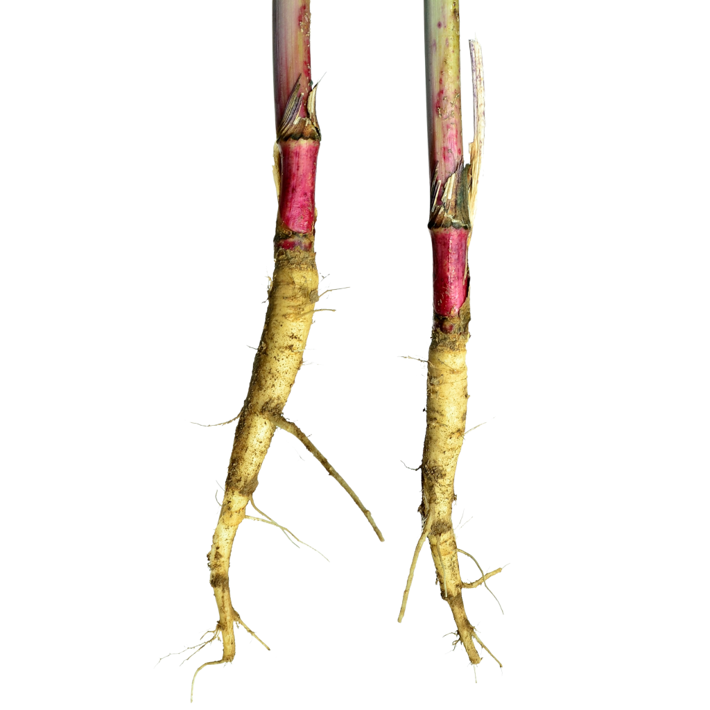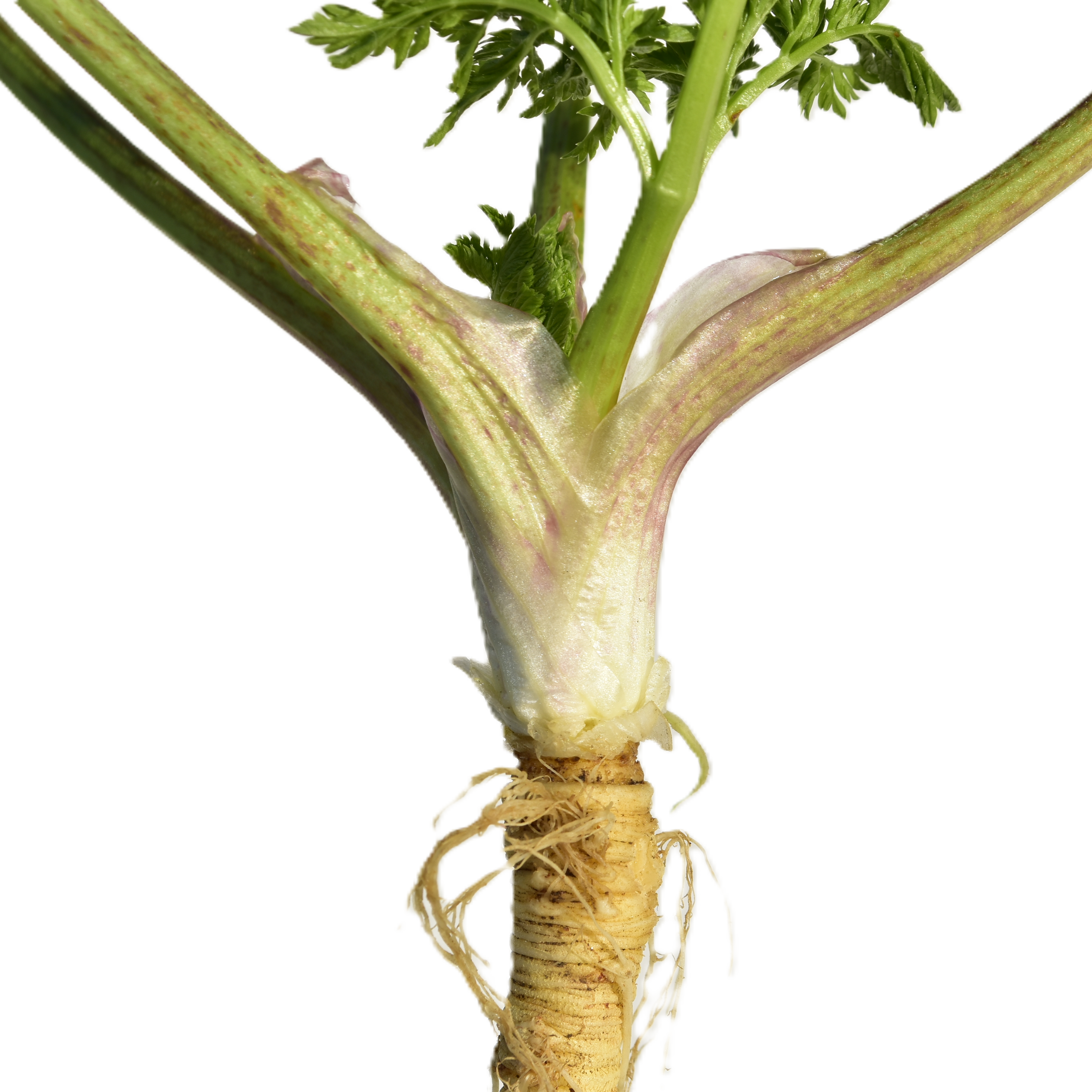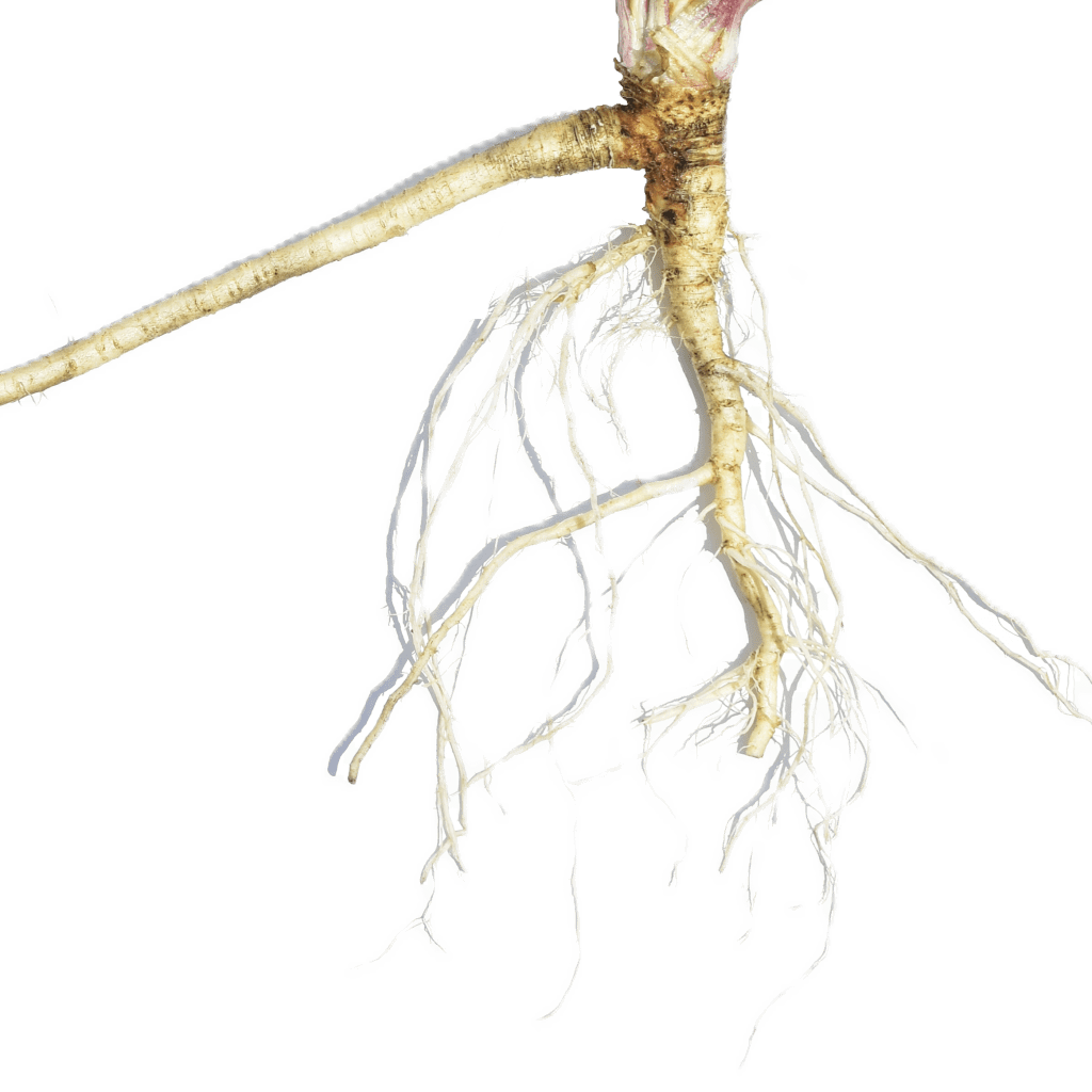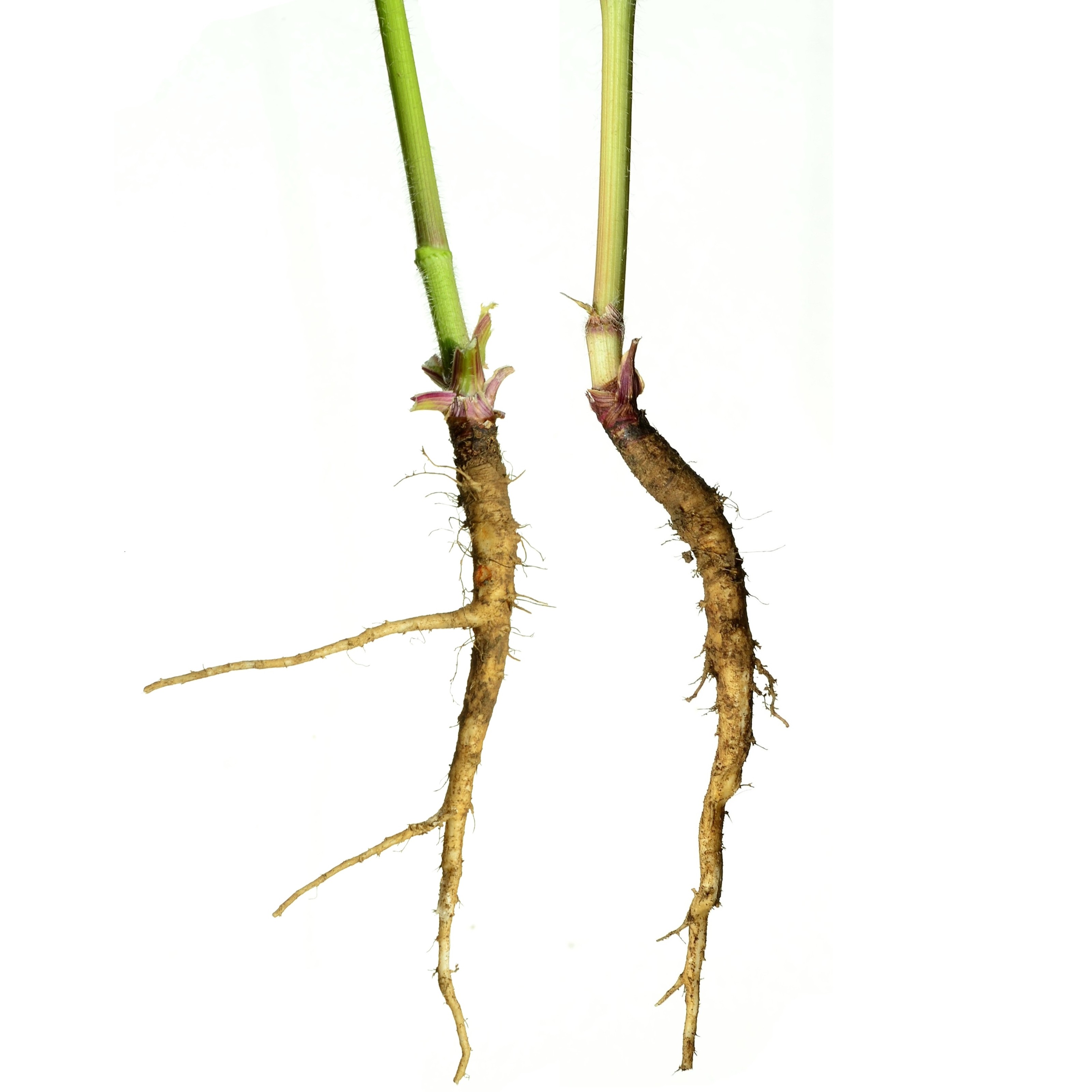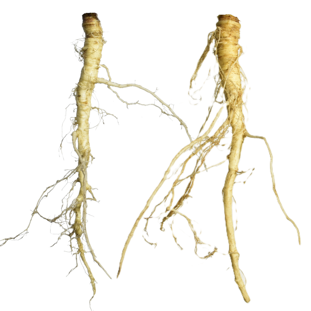 Similarity: Both produce a fleshy taproot with a ridged surface, often branching in rocky soil, with fine lateral roots, tan to off-white in color.