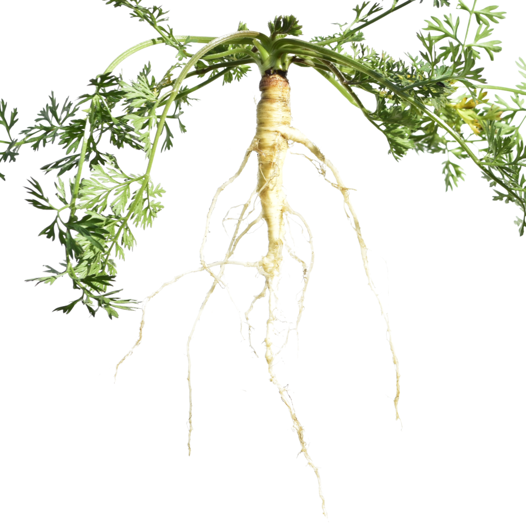 🥕 Wild Carrot has a long, slender taproot (5-9″long) with an average diameter of 1/4 to 5/8 inches. It tapers quickly from the crown producing fine lateral roots. In first-year plants, the texture is slightly fibrous but still edible, however, it will lignify during flower production, rendering it too woody to chew. The color is off-white. The odor is distinctively carrot with an earthy spice.
