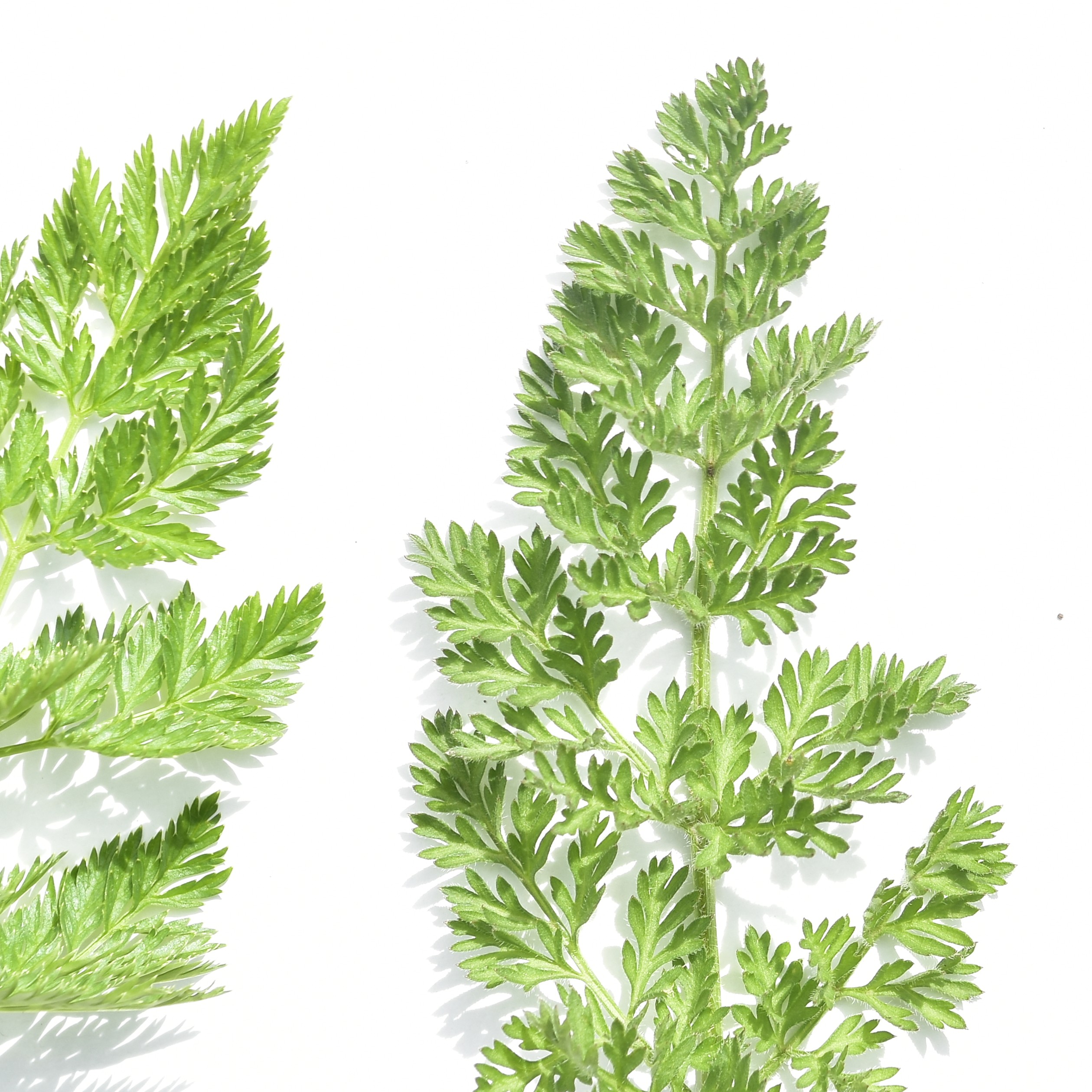 Similarity: Decompound, lacy, and fern-like. Perimeter outline is triangular in shape. Petiole is sheathed.
