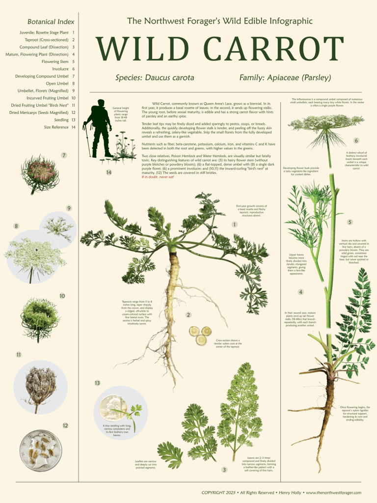 For the educator, enthusiast, or nature admirer, I’ve designed a Wild Carrot infographic poster that highlights all of its identifiable features.