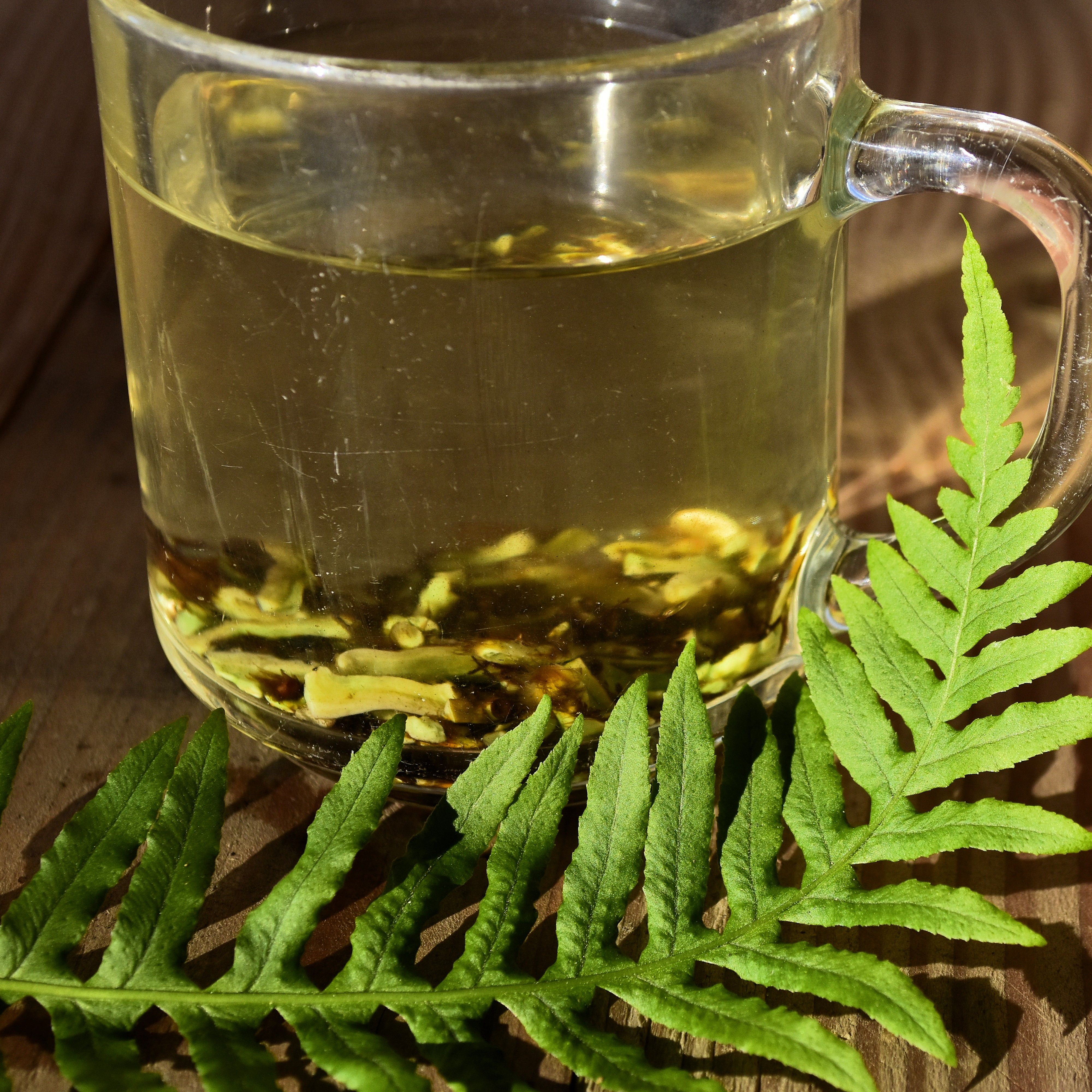Licorice Fern has a flavor that tastes like, you’ve guessed it, licorice! It’s this very quality that has made it a historically popular cold remedy. The rhizome contains glycyrrhizin, the same compound found in true licorice root, which is responsible for relieving a sore throat. To make a tea, harvest the fresh green rhizomes with care, being sure not to disturb anymore of the rhizome structure than is necessary. (Remove small pieces randomly from large patches and tuck back any disturbed moss.) Carefully scrape off any roots or debris from the harvested rhizome before dehydrating. You can steep 1-2 tablespoons in near boiling water for 10 min. Enjoy with honey!